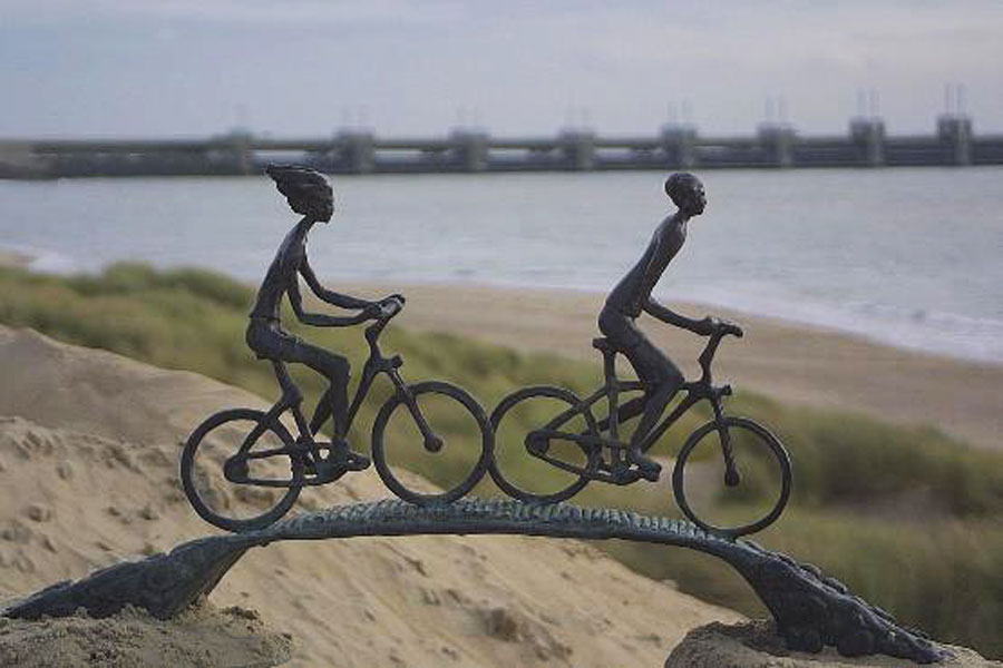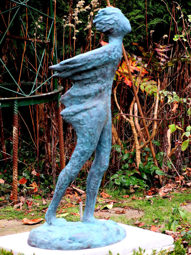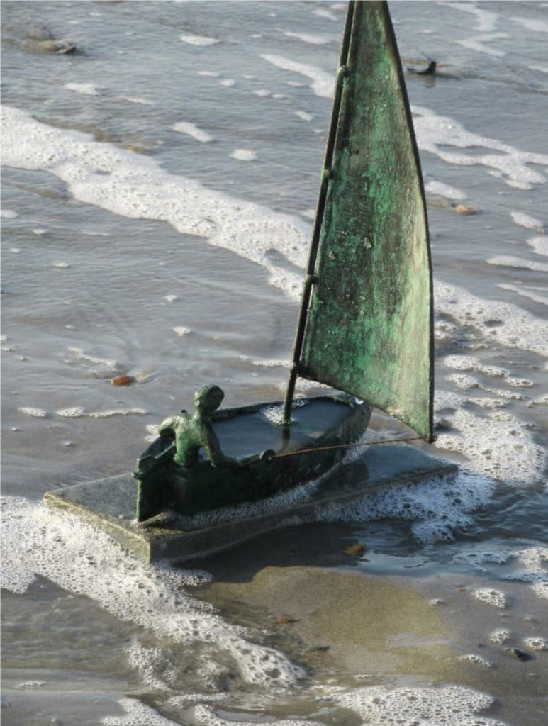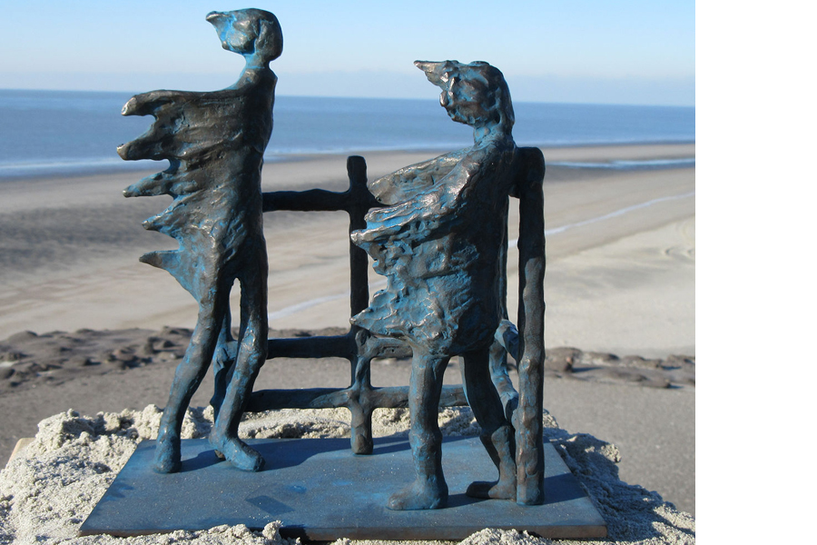 “Daar waait het altijd”. Tevens staat in de oude van Galenbuurt een beeld in brons van twee kinderen in de wind. Geboren achter de dijk en 20 jaar wonen en varen met een tjalk uit 1896, is de wind en het water niet meer weg te denken in mijn werk.