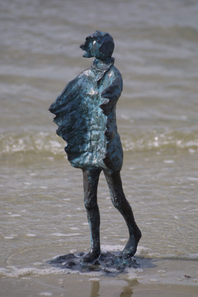 “Tegenwind” en “Storm” geven aan alert en strijdvaardig te zijn, stralen kracht en energie uit. Iets ongrijpbaars als wind visualiseren en omzetten in energie, gaat samen in mijn serie windbeelden. Het strand is zelden onbevolkt; zowel van de zon als van de stormen genieten de mensen. Lopend in de wind geeft mij een gevoel van vrijheid en strijdbaarheid.