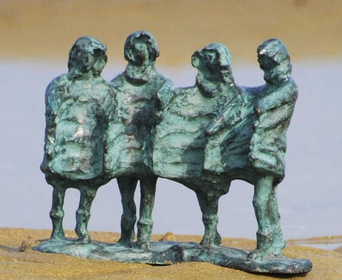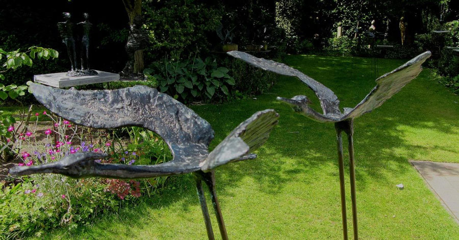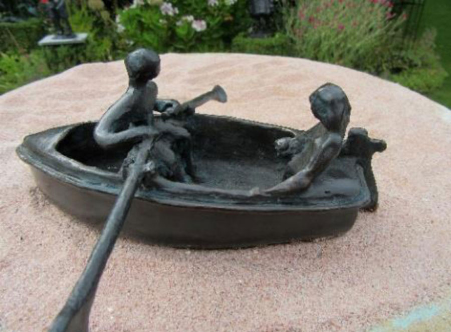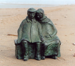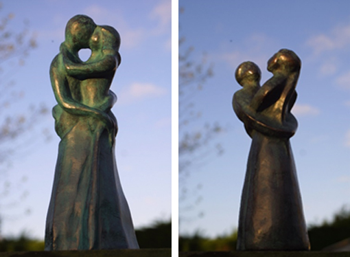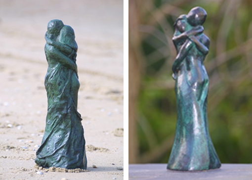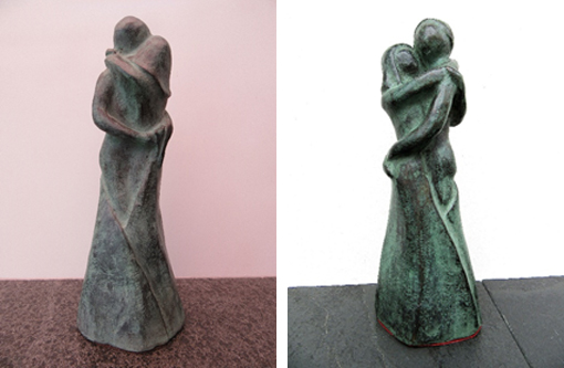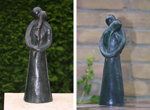 Het echtpaar op de bank was voor een 40-jarig huwelijk en de omarmingen zijn ontstaan door een vriendengroep studenten, die allemaal een verschillende omarming kregen. Daar deze bronzen in een oplage van 8 worden gemaakt, vanwege de prijs, kreeg ik een royale collecte. Hoewel enkele modellen reeds uitverkocht zijn.