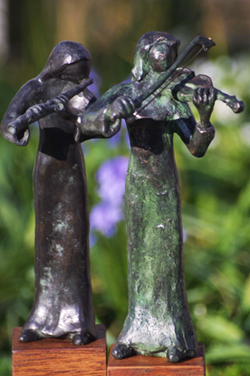 De fluitspeelster en violiste waren in opdracht als stel en de tors is de laatste, die nog op voorraad is. Dansparen , hoogzwanger en vluchtig zijn zonder opdracht gemaakt, terwijl de fietsers in verschillende uitvoeringen en maten wel weer gevraagd werden. Er zijn dan ook meestal enkele bronzen op voorraad.